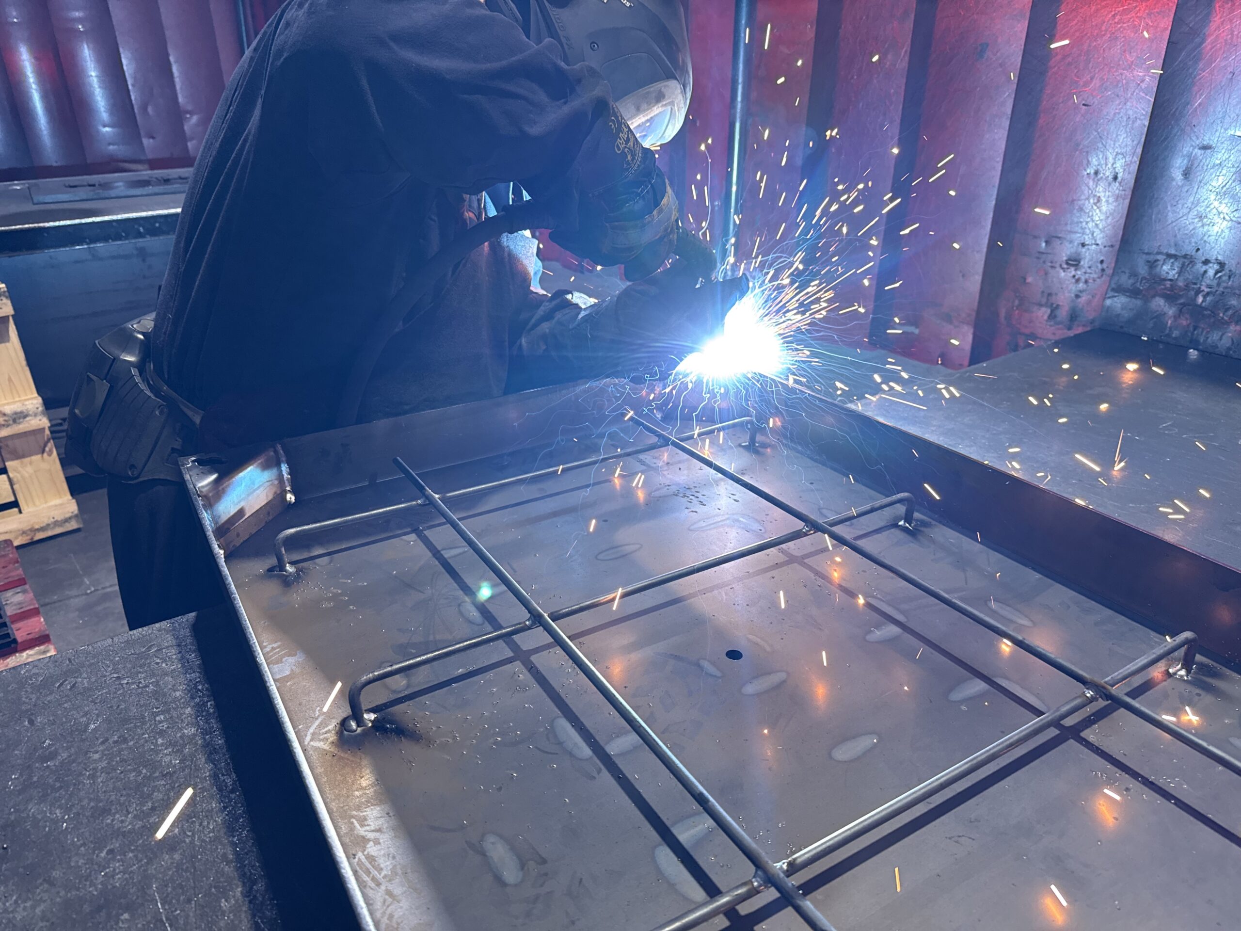 The client specified the lids were to be infilled with concrete so tie bars were added into the base of each recessed lid to strengthen the concrete bond.